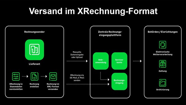 Zukünftig können verschiedene E-Rechnungsformate für den strukturierten Austausch von Rechnungen und Daten zwischen Unternehmen, Behörden und Verbrauchern genutzt werden. Die wichtigsten Formate für elektronische Rechnungen sind: XRechnung, ZUGFeRD/Factur-X, EDI (Electronic Data Interchange) bzw. alle Formate, die der Norm EN 16931 entsprechen und in den zugelassenen Syntaxen CII (Cross Industry Invoice) oder UBL (Universal Business Language) erstellt wurden, sind erlaubt.