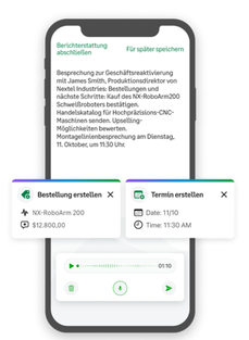 Sprachsteuerung mit KI – schneller, präziser, effizienter. Berichten Sie Sage Copilot von Ihrem letzten Kundenbesuch.
